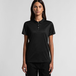 • Short sleeve collared polo shirt, 3 button placket, tonal buttons, side seamed, double needle hem, moisture wicking, quick drying
